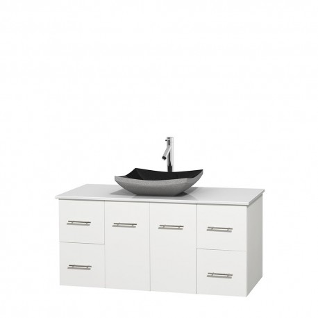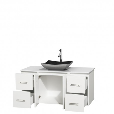 48 inch Single Bathroom Vanity in Matte White, White Man-Made Stone Countertop, Altair Black Granite Sink, and No Mirror