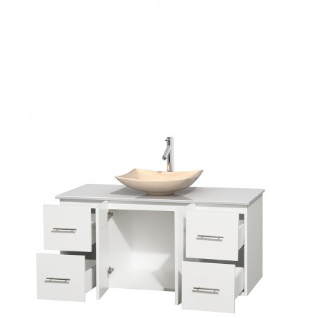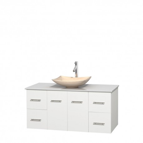 48 inch Single Bathroom Vanity in Matte White, White Man-Made Stone Countertop, Arista Ivory Marble Sink, and No Mirror