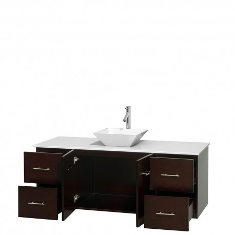 60 inch Single Bathroom Vanity in Espresso, White Man-Made Stone Countertop, Pyra White Porcelain Sink, and No Mirror
