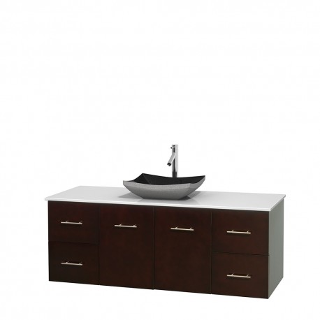 60 inch Single Bathroom Vanity in Espresso, White Man-Made Stone Countertop, Altair Black Granite Sink, and No Mirror