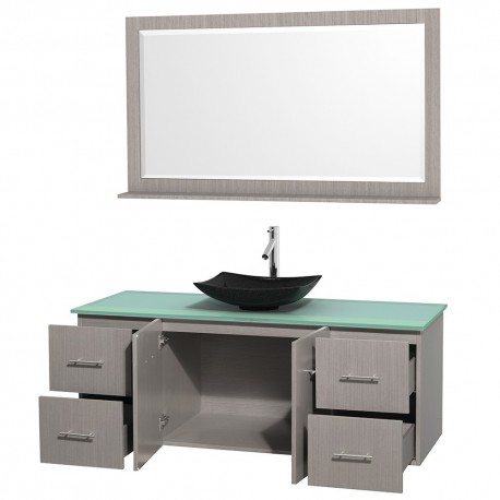 60 inch Single Bathroom Vanity in Gray Oak, Green Glass Countertop, Arista Black Granite Sink, and 58 inch Mirror