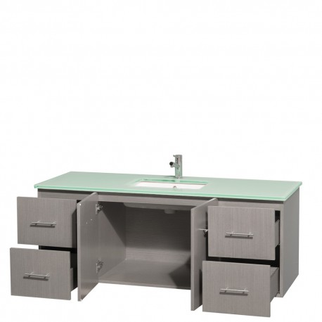 60 inch Single Bathroom Vanity in Gray Oak, Green Glass Countertop, Undermount Square Sink, and No Mirror