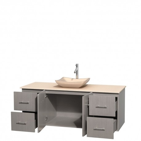 60 inch Single Bathroom Vanity in Gray Oak, Ivory Marble Countertop, Avalon Ivory Marble Sink, and No Mirror