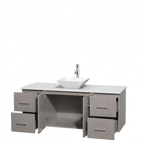 60 inch Single Bathroom Vanity in Gray Oak, White Man-Made Stone Countertop, Pyra White Porcelain Sink, and No Mirror