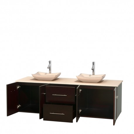 72 inch Double Bathroom Vanity in Espresso, Ivory Marble Countertop, Avalon Ivory Marble Sinks, and No Mirror