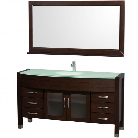 60 inch Single Bathroom Vanity in Espresso, Green Glass Countertop, Integrated Sink, and 60 inch Mirror