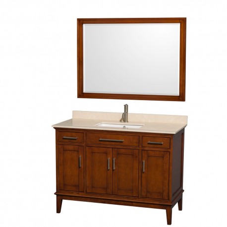 48 inch Single Bathroom Vanity in Light Chestnut, Ivory Marble Countertop, Undermount Square Sink, and 44 inch Mirror