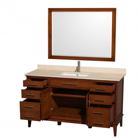 60 inch Single Bathroom Vanity in Light Chestnut, Ivory Marble Countertop, Undermount Square Sink, and 44 inch Mirror