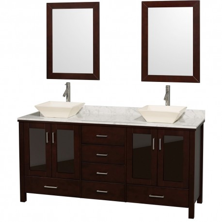 The Lucy Double Bathroom Vanity by Wyndham Collection is as beautiful as it is functional. The modern design puts a visual emphasis on clean lines, luxurious natural marble, abundant storage for two, and is at home in almost every bathroom decor. Included in the Lucy Double Bathroom Vanity are either solid White Carrera Marble or Ivory Marble counters, a multitude of sink options, and a pair of matching mirrors. Featuring soft-close door hinges, you'll never hear a door slam shut again. A rich espresso finish, four doors, and six drawers, and the ease of installation of a free-standing vanity are among the features. The Wyndham Collection is an entirely unique and innovative bath line. Sure to inspire imitators, the original Wyndham Collection sets new standards for design and construction.
