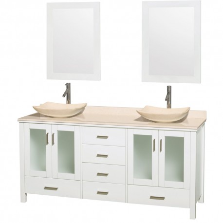 72 inch Double Bathroom Vanity in White, Ivory Marble Countertop, Arista Ivory Marble Sinks, and 24 inch Mirrors