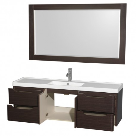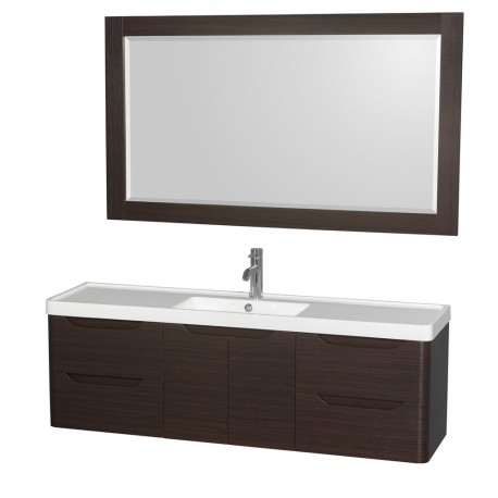 60 inch Single Bathroom Vanity in Espresso, Acrylic-Resin Countertop, Integrated Sink, and 58 inch Mirror