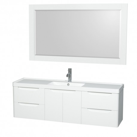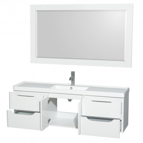 60 inch Single Bathroom Vanity in Glossy White, Acrylic-Resin Countertop, Integrated Sink, and 58 inch Mirror