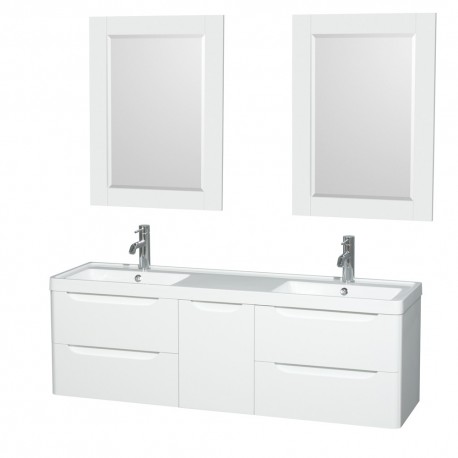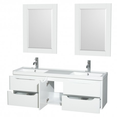 60 inch Double Bathroom Vanity in Glossy White, Acrylic-Resin Countertop, Integrated Sinks, and 24 inch Mirrors