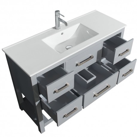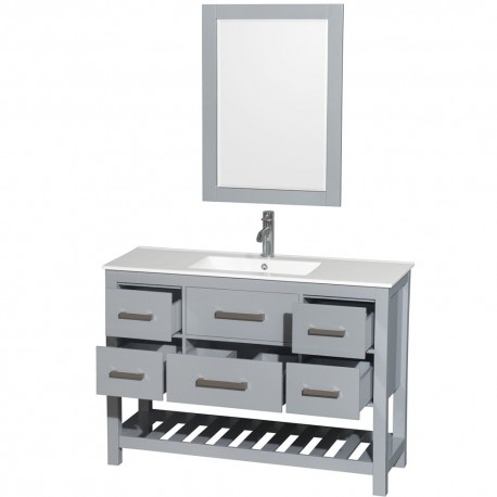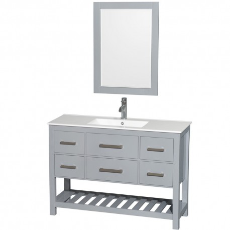 48 inch Single Bathroom Vanity in Gray, White Porcelain Countertop, Integrated Sink, and 24 inch Mirror