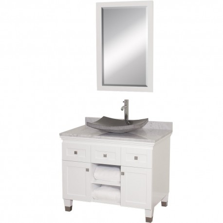 36 inch Single Bathroom Vanity in White, White Carrera Marble Countertop, Altair Black Granite Sink, and 24 inch Mirror