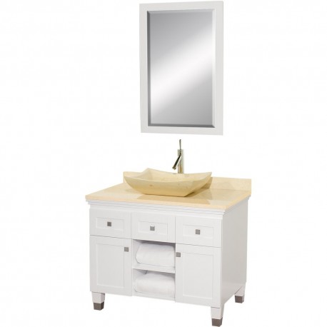 36 inch Single Bathroom Vanity in White, Ivory Marble Countertop, Avalon Ivory Marble Sink, and 24 inch Mirror