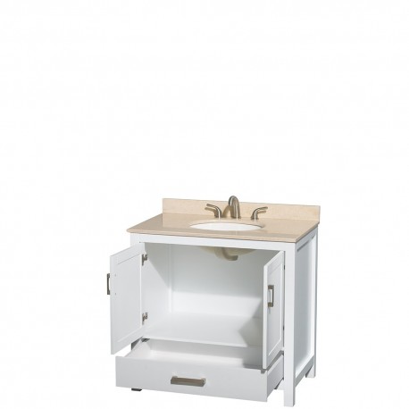 36 inch Single Bathroom Vanity in White, Ivory Marble Countertop, Undermount Oval Sink, and No Mirror