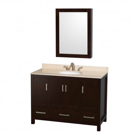 48 inch Single Bathroom Vanity in Espresso, Ivory Marble Countertop, Undermount Oval Sink, and Medicine Cabinet