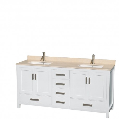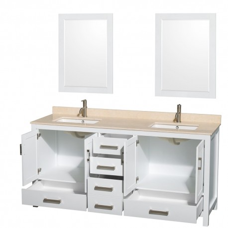 72 inch Double Bathroom Vanity in White, Ivory Marble Countertop, Undermount Square Sinks, and 24 inch Mirrors