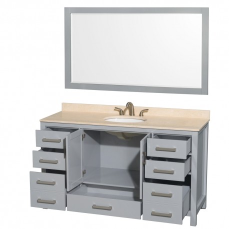 60 inch Single Bathroom Vanity in Gray, Ivory Marble Countertop, Undermount Oval Sink, and 58 inch Mirror
