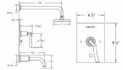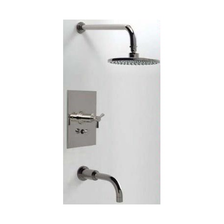 Push button diverter, 8" deluge rain head, arm, flange, handle trim and tub filler