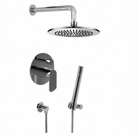 Trim plate and handle8" Showerhead with 12" arm & flangeWall bracket handshower set with 59" hoseShowerhead features no-clog, easy-clean spray nozzlesFlow rates: Showerhead - 2.0 max gpm, handshower - 1.5 max gpm1/2" Rough valve flow rate - 6.5 gpm @60 psi from spo