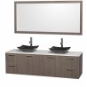 Collection: AmareModern/Contemporary: 72 inch Double Bathroom Vanity in Gray Oak, White Man-Made Stone Countertop, Arista White Carrera Marble Sinks, and 70 inch Mirror Spec Sheet Vanity/TubSpec Sheet Mirror/FaucetInstalation GuideMirror/Medicine Cabinet Installation GuideManufacturer: Wyndham CollectionExplore Wyndham Collection products
