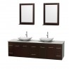 Collection: CentraModern/Contemporary: 80 inch Double Bathroom Vanity in Espresso, White Carrera Marble Countertop, Pyra White Porcelain Sinks, and 70 inch Mirror Spec Sheet Vanity/TubInstalation GuideManufacturer: Wyndham CollectionExplore Wyndham Collection products