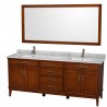 Collection: HattonModern/Contemporary: 80 inch Double Bathroom Vanity in Dark Chestnut, White Carrera Marble Countertop, Undermount Oval Sinks, and 70 inch Mirror Spec Sheet Vanity/TubSpec Sheet Mirror/FaucetInstalation GuideManufacturer: Wyndham CollectionExplore Wyndham Collection products