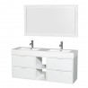 Collection: OliviaModern/Contemporary: 60 inch Double Bathroom Vanity in Glossy White, Acrylic Resin Countertop, Integrated Sinks, and 58 inch Mirror Spec Sheet Vanity/TubSpec Sheet Mirror/FaucetInstalation GuideCounter Handling InstructionManufacturer: Wyndham CollectionExplore Wyndham Collection products