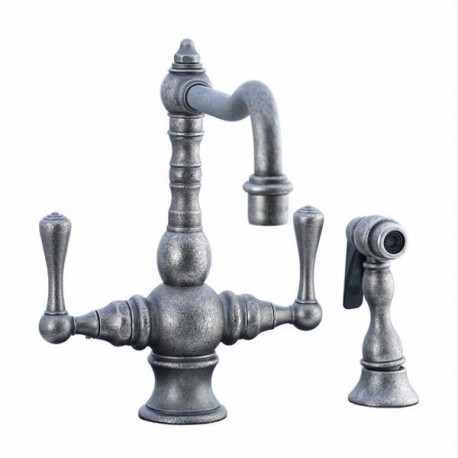3 hole installation6" - 12" flex mountSpout is 9" long x 8" highSwivel spout Item shown in Distressed Nickel finish.