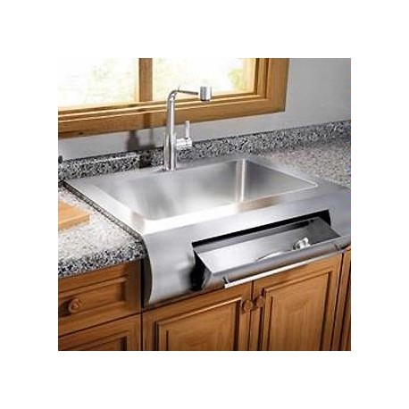 Functional tilt-out drawerHandcrafted from a single sheet of stainless steel Commercial grade - 16 gauge material Corrosion resistant 304 series stainless steel (18/10) Elegant no.4 brushed finish (appliance finish) Highly efficient sound deadening pads Practical flat sink bottom and straight bowl sides Stylish and functional bowl bottom grooves Limited lifetime warranty Bowl Size: 30" x 18" x 10" Overall Dimension: 36" x 28" x 10" Recommended Cabinet Width: 36" Drain: Rear 3.5"