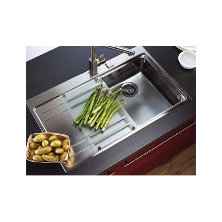 The new Mythos line generation has all the ingredients of a new classic. This Stainless Steel, ergonimically proven sink, makes work a real pleasure. The flexible preperation board is made of tempered satin glass that you can slide right over your sink. Also available in Left-Hand version MTX611LH.