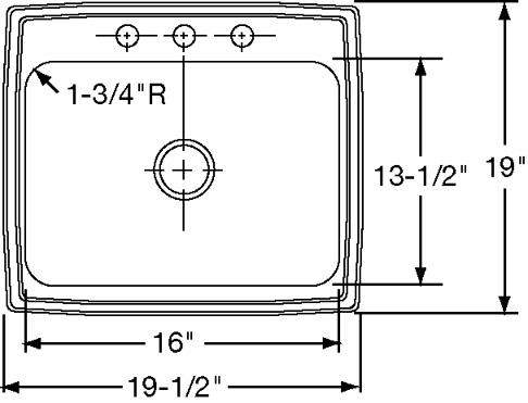 Bowl and Faucet Deck Recess: 3/16" below outside edge of sink.