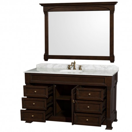Wyndham Collection, the beautiful Andover bathroom vanity series represents an updated take on traditional styling. The Andover is a keystone piece, with strong, classic lines and an attention to detail. The vanity and solid marble countertop are hand carved and stained. Available in Black, White and Dark Cherry finishes to match any decor. Available in a range of single or double vanity sizes to fit any bathroom.