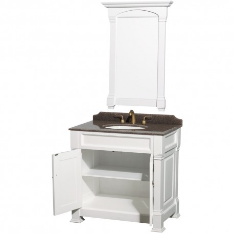 36 inch Single Bathroom Vanity in White, Imperial Brown Granite Countertop, Undermount Oval Sink, and 28 inch Mirror