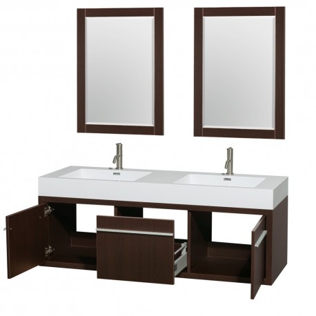 60 inch Double Bathroom Vanity in Espresso, Acrylic Resin Countertop, Integrated Sinks, and 24 inch Mirrors