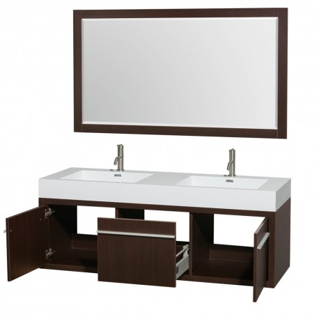 60 inch Double Bathroom Vanity in Espresso, Acrylic Resin Countertop, Integrated Sinks, and 58 inch Mirror