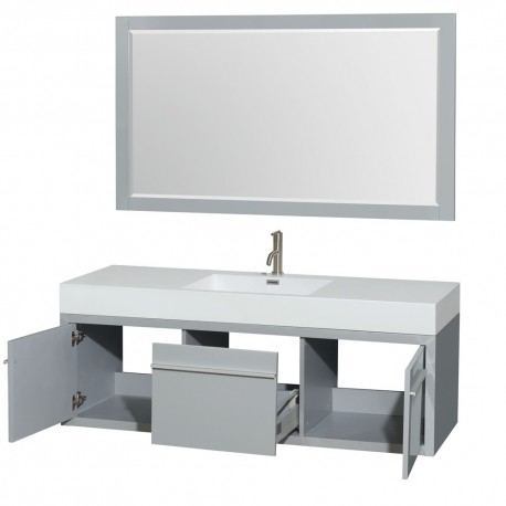 60 inch Single Bathroom Vanity in Dove Gray, Acrylic Resin Countertop, Integrated Sink, and 58 inch Mirror