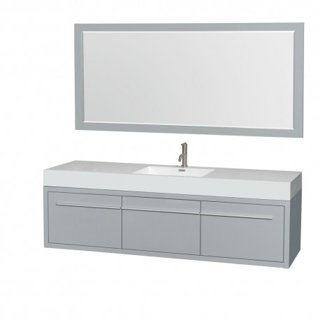 72 inch Single Bathroom Vanity in Dove Gray, Acrylic Resin Countertop, Integrated Sink, and 70 inch Mirror