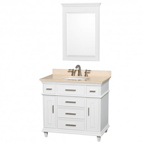 36 inch Single Bathroom Vanity in White with Ivory Marble Top with White Undermount Oval Sink and 24 inch Mirror