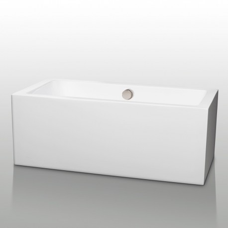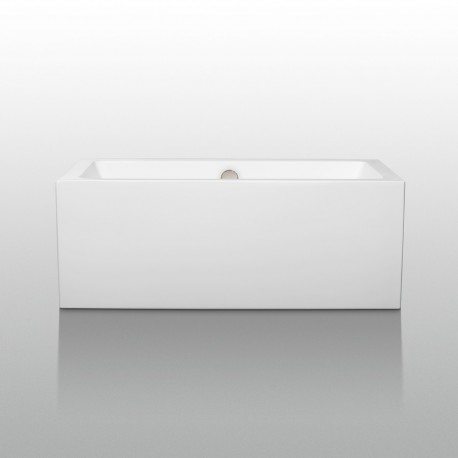 60 inch Freestanding Bathtub in White with Brushed Nickel Drain and Overflow Trim