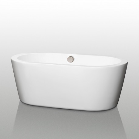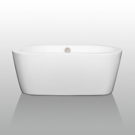 60 inch Freestanding Bathtub in White with Brushed Nickel Drain and Overflow Trim