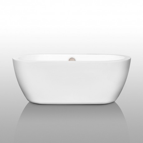 60 inch Freestanding Bathtub in White with Brushed Nickel Drain and Overflow Trim