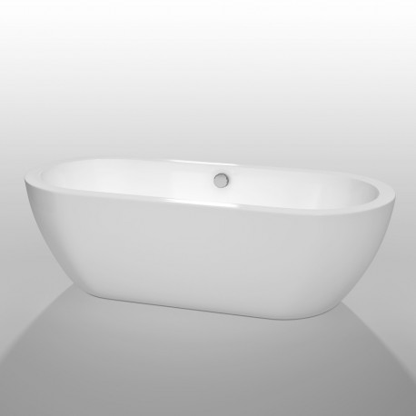 72 inch Freestanding Bathtub in White with Polished Chrome Drain and Overflow Trim