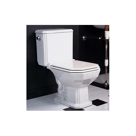 This unique toilet features raised French Art Deco detailing and a push-button flush knob. Other authentic accents include the octagonal shaped bowl, cover and seat.