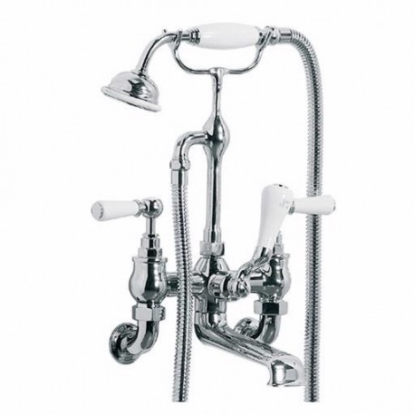 Wall Mount w/ Handshower: Lefroy Brooks Classic Wall Mounted Bath Shower Mixer w/ White Levers-WL1166