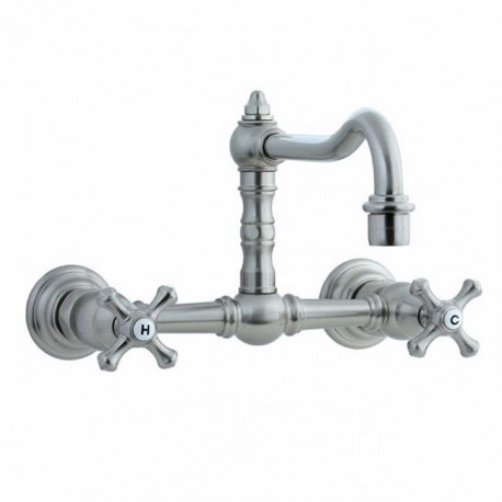 8" centers with no center hole, 3/4" inlets with unions Spout is 6" long3/4" male nipple connection at wallSwivel spoutDoes not include drainNote: Straight Grid Drain - 1 1/4" x 6" straight tallpiece without overflow holes. Sold separately.