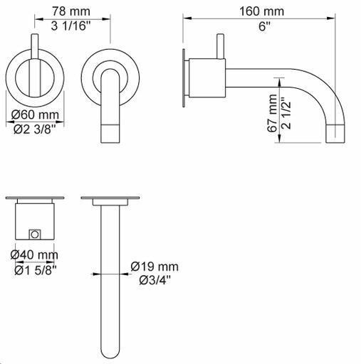 Wall Mount: VOLA One-Handle Mixer, 6" Spout and Rosette (1.3 gpm) - 111