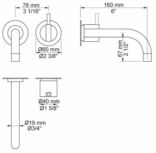 Wall Mount: VOLA One-Handle Mixer, 6" Spout and Rosette, For Spout to Left Installation (1.3 gpm) - 111X